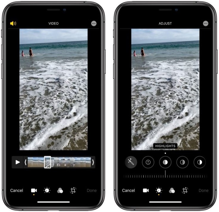 Nearly everything you can do with a photo you can now do with a video. Adjustments, filters, and crop support video editing, so you can rotate, increase exposure, or even apply filters to your videos. Video editing supports all video formats captured on iPhone, including video in 4K at 60 fps and slo-mo in 1080p at 240 fps.1